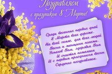 Дорогие женщины, заботливые, умные, добрые, мамочки, сестрички, бабушки, подружки, мы желаем Вам радости, яркого весеннего настроения, любви и семейного благополучия. Пусть приятные воспоминания, которые подарит праздник, сохранятся в вашей душе на весь год. Будьте здоровы и счастливы!