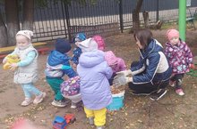 Сегодня со второй младшей группой №6 совместили приятное с полезным делом.