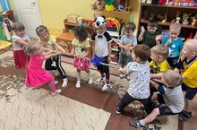 Сегодня в нашем детском саду прошло мероприятие, посвящённое Дню Именинников лета. В гости к ребятам пришла Поздравлялка и провела им различные конкурсы: эстафета "Торт ко дню рождения" (из лего со свечой); "Нарисуй смайлик на воздушном шарике закрытыми глазами"; "Угостись печеньем из тарелки с мукой без помощи рук"; "Танец со стаканом полным воды"; "Веселые приседания"; "Необычные художники"; "Сладкие улыбки"; "Сбей конфету мячом"; "Накрой стол и нарядись", а в конце мероприятия были дискотека и подарки.