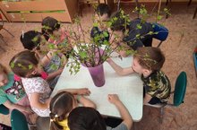 В средней группе N11 дети вместе с воспитателем Шушаковой Л.И провели эксперимент-наблюдение за развитием почек веточек берёзы, пщеницы и лука.