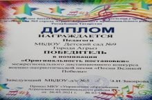 Наши педагоги участвовали в Межрегиональном дистанционном конкурсе военно-патриотической песни "Песни Великой Победы" и победили в номинации "Оригинальность постановки". Желаем дальнейших побед и творческих успехов.