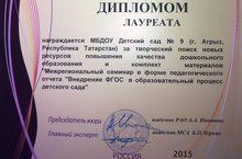 Хочется ПОЗДРАВИТЬ педагогический коллектив и творческую группу нашего детского сада, принявших активное участие во Всероссийском конкурсе "Росточек: мир спасут дети" в номинации: "Я внедряю ФГОС", которые награждены ДИПЛОМОМ ЛАУРЕАТА данного конкурса. Молодцы!