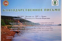 Прикамское управление Министерства экологии и природных ресурсов Республики Татарстан выражает нашему педагогическому коллективу и руководителю - Наталье Борисовне Красноперовой искреннюю благодарность за активное участие в Республиканском конкурсе "Эколидер".