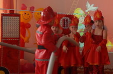 Первая часть семина прошла в нашем детском саду, вторая часть была организована в виде конкурса агитбригад среди ДОУ в РДК. В конкурсе приняли участие 8 садов города и с.М.Пурга.Конкурс состоял из 2 этапов. На 1-м этапе конкурса агитбригада агитировала соблюдение правил пожарной безопасности и прославляла работу пожарного. Во 2-м этапе конкурса агитбригада предоставляла дидактическую игру.