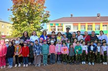 Сегодня в нашем детском саду прошло экологическое мероприятие, направленное на признание особого статуса педагогических работников, в том числе выполняющих наставническую деятельность. Встреча посвящена открытию «Аллеи Педагогов», приуроченное к Году Педагога и наставника и Дню дошкольного работника. Началось экологическая акция с выступления педагогов и воспитанников подготовительной группы. С приветственной речью к гостям обратилась заведующая Эльвира Ирековна Закирова. На встрече с детьми и педагогами присутствовали почетные гости. Представитель Агрызского лесничества Сабитов Дилус Рафаэлович выступил с приветственным словом и подарил молодые деревья. На встрече собрался весь педагогический цвет нашего ДОУ . Педагоги -ветераны проработавшие в ДОУ много лет: Маришина В.В., Старикова А.Н., Ожиганова Т.Г., Туганаева Ф.Ф., Рязанова Л.А. Под звуки метронома все собравшиеся почтили минутой молчания тех ветеранов педагогики, которых уже нет сегодня с нами.
