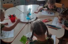Дети средней группы - рассматривали сюжетные картинки "01 спешит на помощь" и рисовали на тему "Почини автомобиль".