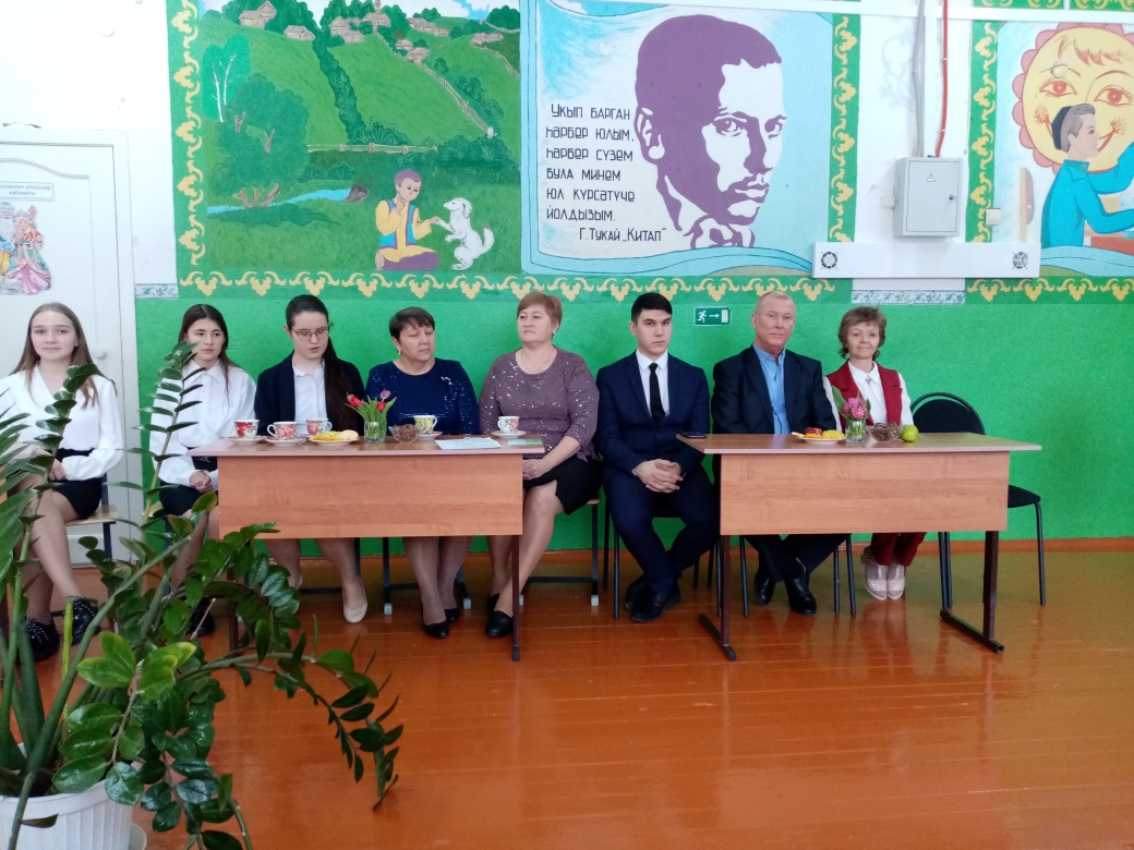 На уроке участвовали почетные гости: заместитель главы Агрызского муниципального района Республики Татарстан Ямалиев И. И., начальник МКУ «Управления образования» Сафиуллина В. Г., депутат районного Совета Рамазанов И. Г., учителя и учащиеся Кадыбашской и Исенбаевской школ.