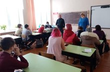 Бүген элеккеге укучыбыз, хәзерге вакытта Казан федераль университетының 1 курс студенты Мөэминова Гөлназ, очрашуга килеп, укучыларны үзе белем ала торган уку йорты белән таныштырды, КФУга керү имтиханнары, анда уку, студентның кызыклы һәм мавыктыргыч тормышы тунрында тәфсилләп сөйләп, укучыларның сорауларына бик теләп җавап бирде.