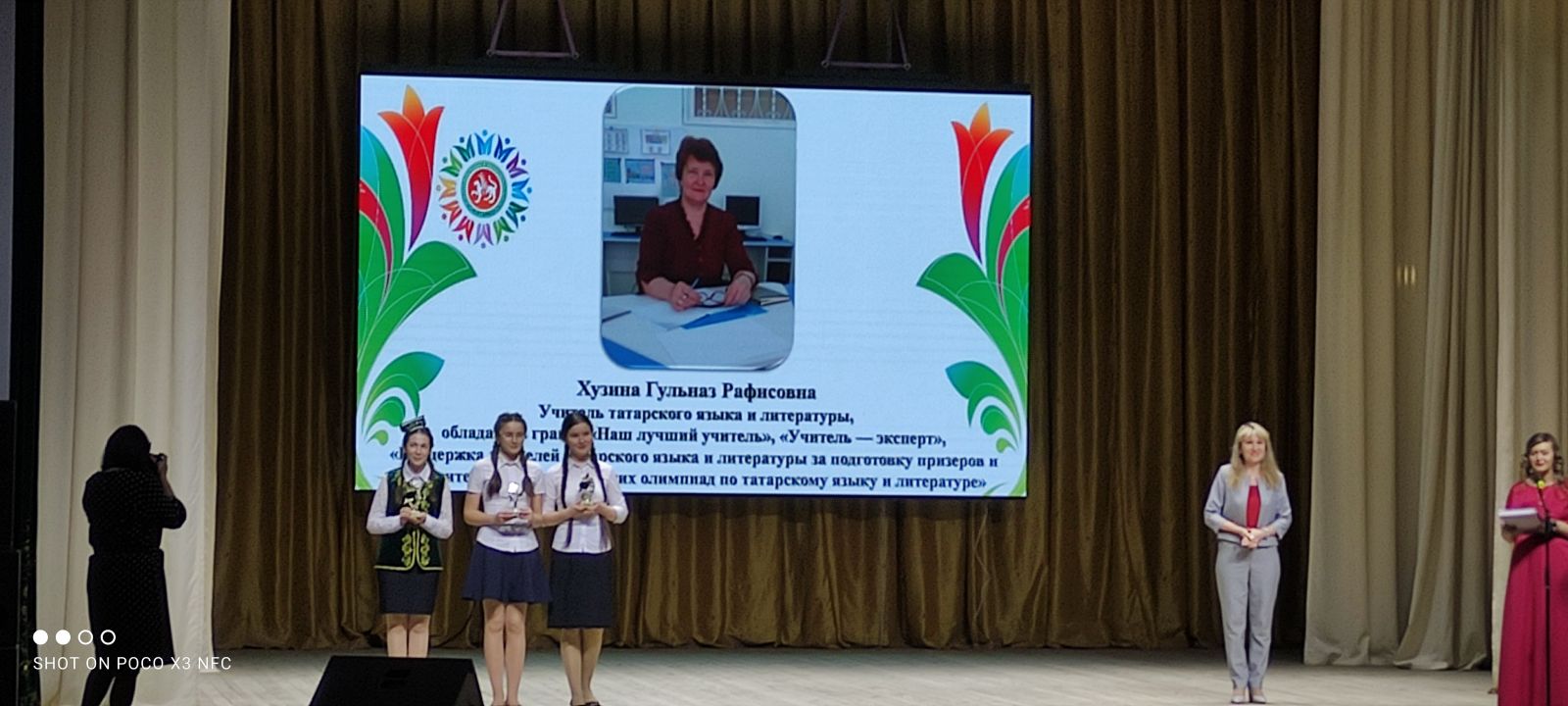Мөхәммәдиева Мәдинә (3 кл.), Нурмөхәмәтова Зилә (6кл.) Щукина Ульянa (7 кл.), Гаврилова Ангелина (7 кл.), Хабирова Ралина (9 кл.), Щукина Кристина (9 кл.), Латыйпова Энҗе (9 кл.), Мөэминова Гөлназ (11 кл.), Нәгыймова Илүзә (11 кл.) "Нәфис сүз остасы", "Яшь хәбәрче", "Видеотасма", "Яшь рәссам", "Яшь хикәяче", "Яшь шагыйрь" номинацияләрендә актив катнаштылар.Хабирова Ралина "Яшь хикәяче" номинациясендә 2 нче урын, Латыйпова Энҗе "Яшь рәссам" номинациясендә 3 нче урын, Нәгыймова Илүзә "Яшь хәбәрче" номинациясендә 2 нче урын алдылар. Щукина Ульяна "Видеотасма" номинациясендә дипломга лаек булды. Калган укучылар Мөхәммәдиева Мәдинә, Нурмөхәмәтова Зилә, Гаврилова Ангелина, Щукина Кристина сертификатка ия булдылар. Кызларны шушы җиңүләре белән котлыйбыз, алга таба да иҗат уңышлары телибез. Укучыларны әзерләгән җитәкчеләре Хуҗина Г.Р. һәм Латыйпова А.Р. рәхмәт белдерәбез. -