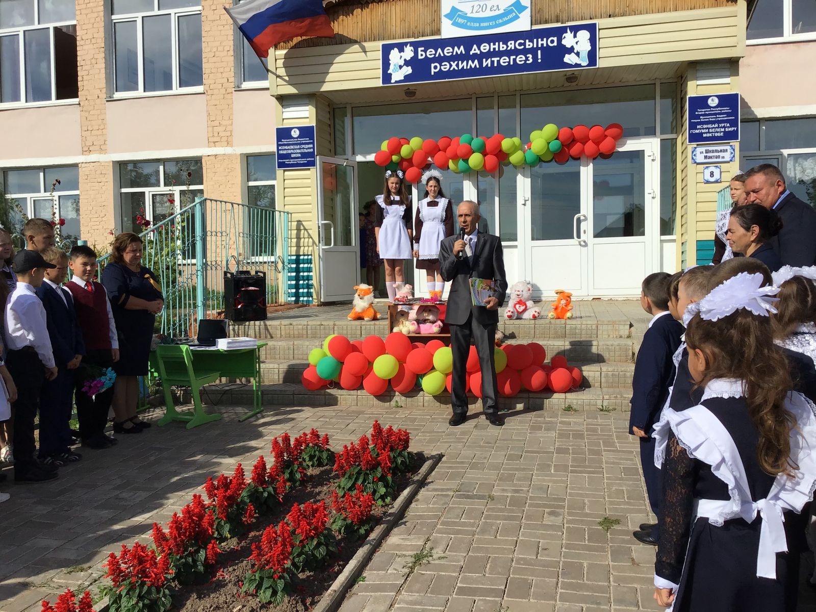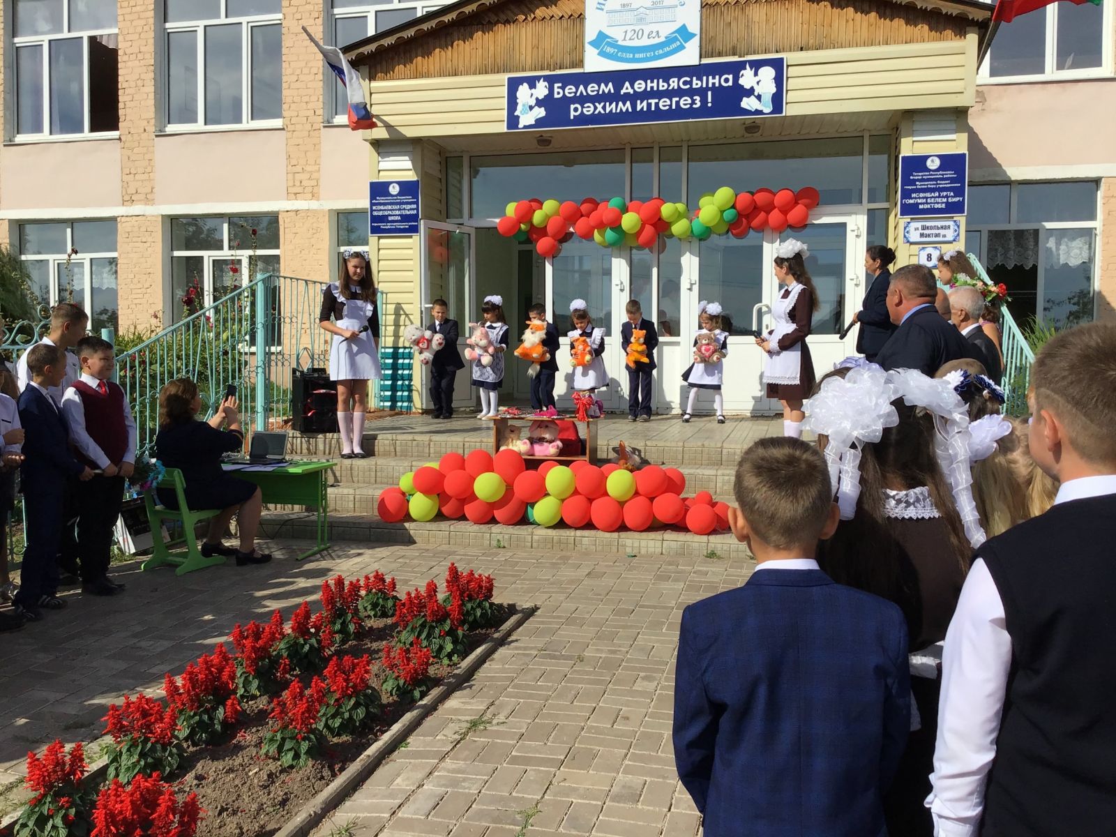 Бүген, 1 нче сентябрь – Белем бәйрәменә багышланган тантаналы линейка гөрләп узды. Мәктәбебез директоры Ринат Габдрахман улы укучыларыбызны, мәктәп коллективын котлап, матур теләкләрен җиткерде. Бәйрәмдә авыл җирлеге башлыгы Фәнил Фаиз улы, район советы депутаты Ильфат Ильяс улы катнашты. Алар укучыларны һәм укытучыларны бәйрәм белән котлап үттеләр, изге теләкләрен җиткерделәр. Кунакларның һәммәсе беренче сыйныфка укырга керүче балаларны бүләкләп үттеләр.