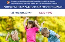 Во исполнение плана работы Министерства образования и науки Республики Татарстан 25.01.2019 с 12.30 до 14.00 состоится Республиканский родительский интернет-семинар «Здоровье и безопасность ребенка». Он-лайн трансляция собрания будет вестись на сайте Казанского инновационного университета имени В.Г.Тимирясова по адресу: https://ieml.ru/.