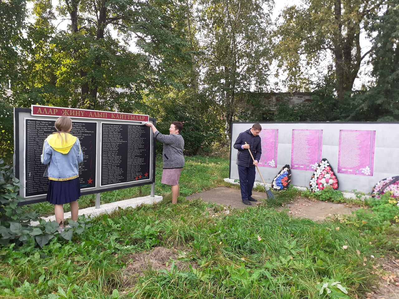 Спортивные и физкультурно-оздоровительные мероприятия в начальных(кл.руководитель Ямалиева Т.Т.)и 8 классах(кл.руководитель Гиззатуллина А.Ш.).Среда. "Ветераны живут рядом". Задача дня - активизировать ресурсы для решения социально-значимых проблем. Учащиеся 7 классов, под рководством классного руководителя Садыковой Г.Н. сделали осеннюю уборку у Памятника участникам ВОВ.