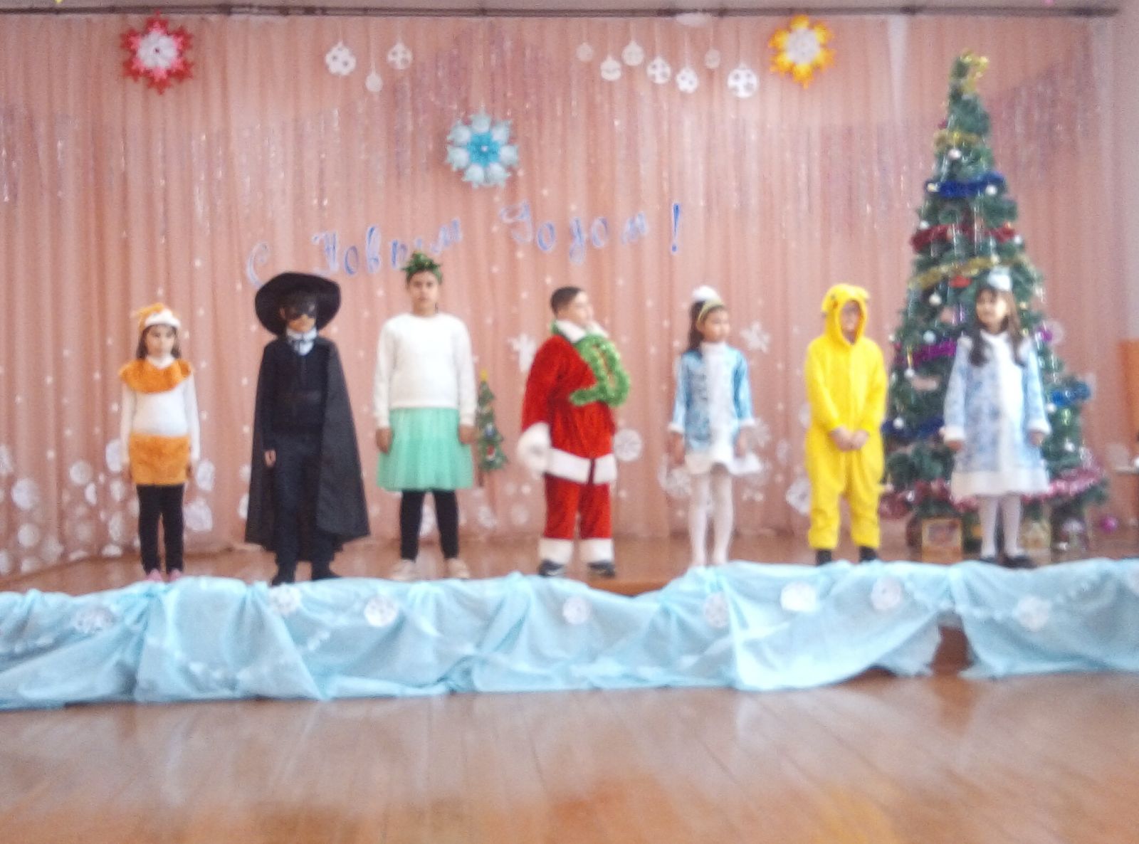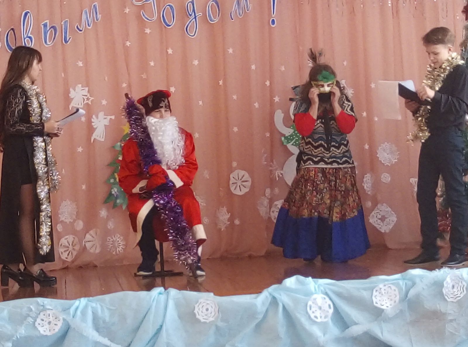 Новогодний праздник – чудесный праздник, связанный с надеждами на лучшее в грядущем году, с ожиданием исполнения всех желаний. Зал со зрителями, превратился в театр, на сцене которого разыгрывали настоящее представление. Ребята в полной мере продемонстрировали свои актёрские способности. Песни и танцы сменяли друг друга. Несколько часов пролетели как один миг. Вот так наша школа праздновала Новый год, весело и дружно. А впереди новогодние каникулы… и самые удивительные дни. Новый год состоялся и он удался. /Яңа ел бәйрәме-киләсе елда иң яхшыга өмет белән, барлык теләкләрнең тормышка ашуын көтү белән бәйле искиткеч бәйрәм. Тамашачылар белән Зал театрга әверелде, аның сәхнәсендә чын тамаша уйналды. Балалар үзләренең актерлык сәләтләрен тулысынча күрсәттеләр. Җырлар һәм биюләр бер-берсен алыштырды. Берничә сәгать бер мизгел кебек үтеп китте. Менә шулай безнең мәктәп Яңа елны күңелле һәм тату бәйрәм итте. Ә алда яңа ел каникуллары... һәм иң матур көннәр. Яңа ел булды һәм ул уңышлы узды.