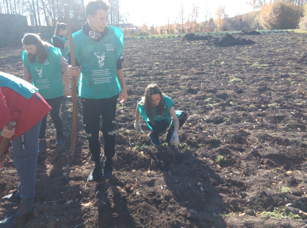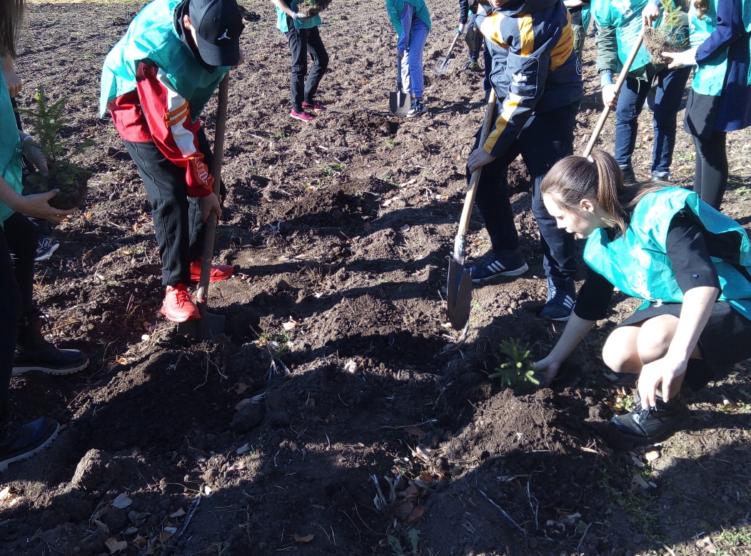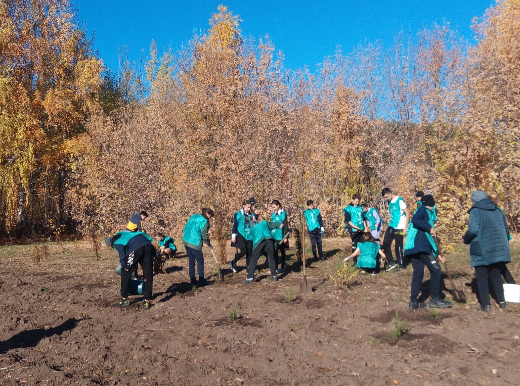 Учащиеся школы совместно с сотрудниками ГПКЗ "Кичке-Тан" провели акцию "Посади дерево". Было посажено более 40 саженцев. /Мәктәп укучылары "Кичкетаң" тыюлыгы хезмәткәрләре белән берлектә "Агач утырт"акциясе үткәрделәр. 40тан артык үсенте утыртылды.