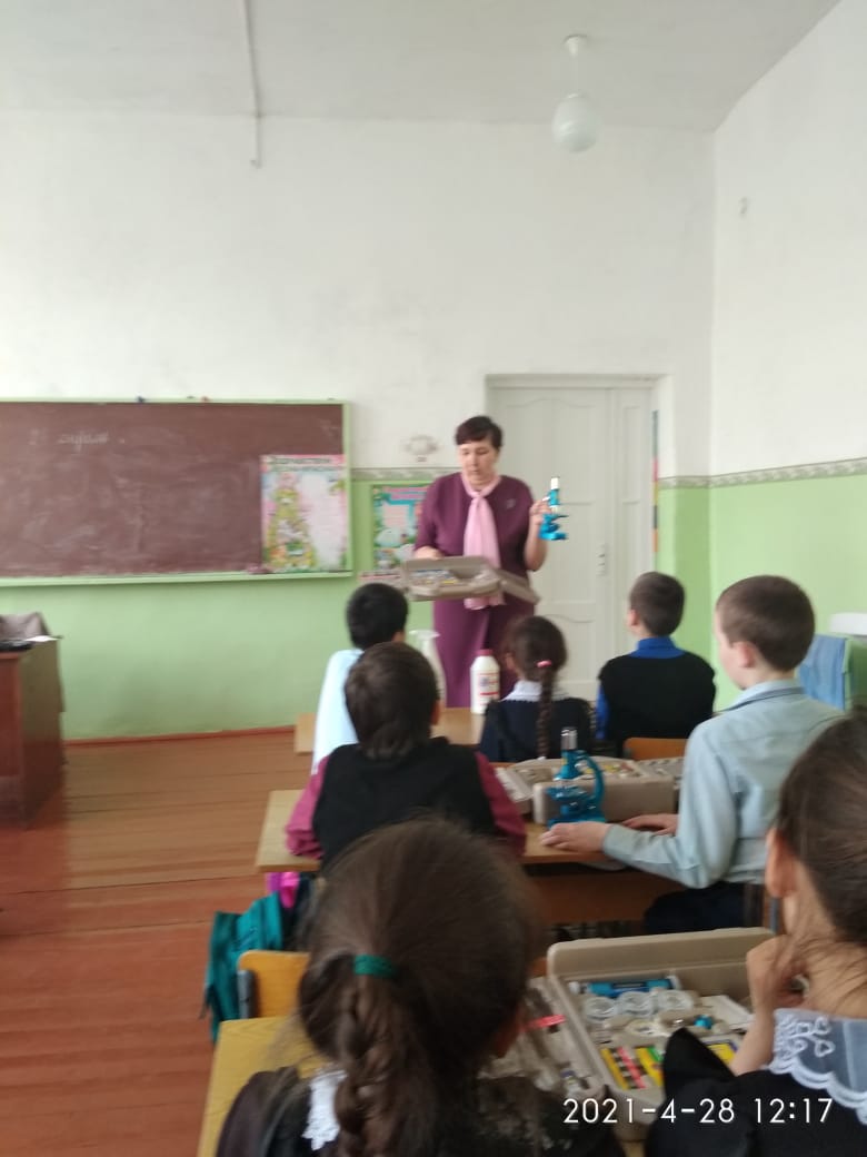 Башлангыч сыйныф укытучысы һәм ресурс үзәге җитәкчесе Ибраһимова Ф.ф. башлангыч сыйныфларда химия куркынычсызлыгы көненә багышланган "табигатьне бергә саклыйк" дигән темага дәрес үткәрде. Балалар зур кызыксыну белән яшь химик җыелмаларын өйрәнделәр, беренче тапкыр микроскопны күрделәр, аның белән мөрәҗәгать итәргә өйрәнделәр.