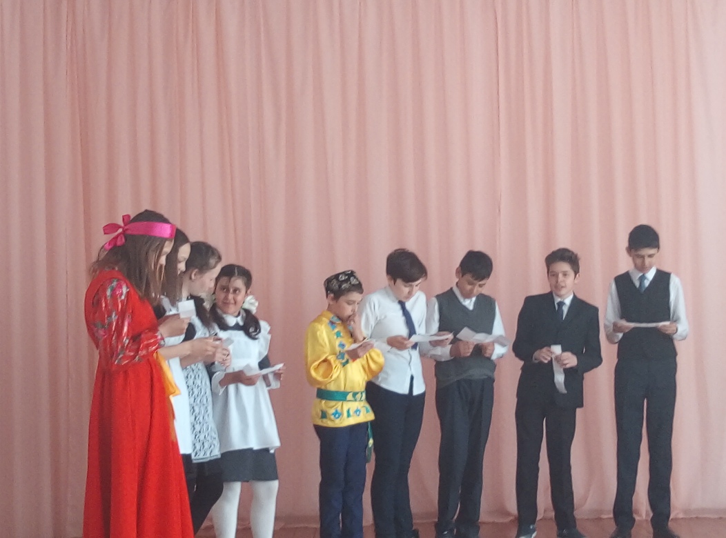 Сегодня, 26 апреля, в школе прошел концерт, посвященной Г. Тукай. В концерте принимали участие все классы: с 1 по 10. Начальная школа читала стихи Г.Тукая на русском и татарском языках, 5 класс - показал сценку, ученица 6 класс Коробейникова Карина танцевала, ученица 7 класса Орехова Екатерина читала стихи Г.Тукая на русском языке, ученица 8 класса Шакирова Элина танцевала индийский танец, Салимгараева Исламия - читала стихи на татарском языке, ученица 9 класса Любимова Полина и ученица 10 класса - танцевали удмуртский танец. Помимо этого, ребята участвовали в конкурсе Угадай пословицу, в конкурсе скороговорок. Также была проведена викторина на знание фактов из жизни и творчества Г.Тукая./