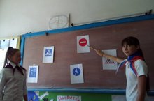 В рамках Недели безопасности учащиеся 8 класса во главе с классным руководителем провели классный час для начальных классов по теме: "О чем говоят дорожные знаки".