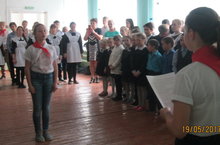 Торжественная линейка началась с рапорта командиров отрядов.Затем активосты рассказали об истории создания пионерской организации. Ахметова Анна Алексеевна подчернула, что пионеры всегда были первыми в учёбе,любознательными,слушались родителей.Поделились своими воспоминаниями о пионерском детстве Ольга Леонидовна и Елена Михайловна.Интересным оказался и видеоролик, где запечетлён момент клятвы пионеров .По традиции линейка закончилась гимном нашей школы "Дорога добра".