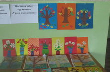 Руководитель кружка "Уроки Самоделкина" от Центра внешкольной работы Ирина Владимировна организовала выставку работ детей под названием " Есть в осени первоначальной короткая ,но дивная пора..."