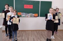 Выставка книг с утра привлекала юных читателей, а девочки из 7 класса встречали наших ребят с интересными лингвистическими задачками и занимательными вопросами из весёлых загадок.