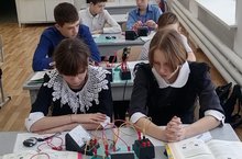 Лабораторная работа по физике "Измерение мощности и силы тока в электрической лампе" проведена в 8 классе с помощью оборудования Центра образования "Точка роста". На уроке учащиеся собирали цепь, определили силу тока и напряжение, используя две шкалы деления амперметра и вольтметра.