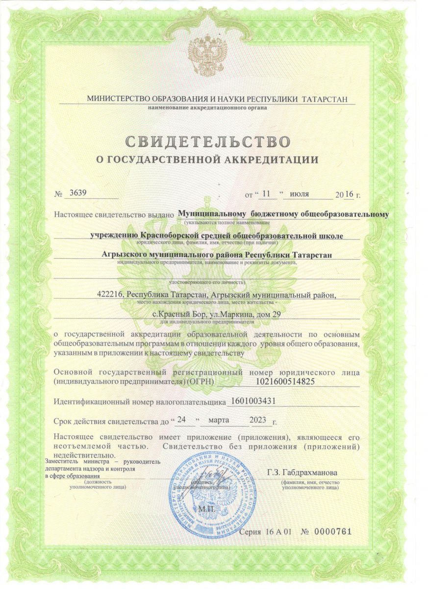 Муниципальное бюджетное общеобразовательное учреждение Красноборская средняя общеобразовательная школа Агрызского муниципального района Республики Татарстан