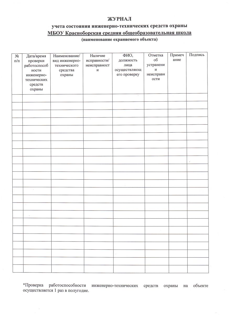 Журнал учета состояния инженерно-технических средст охраны