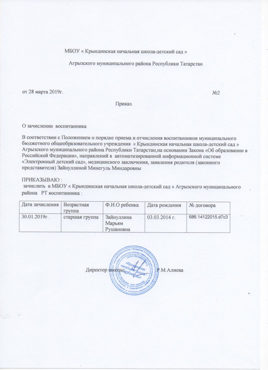 Муниципальное бюджетное общеобразовательное учреждение «Крындинская начальная школа-детский сад» Агрызского муниципального района Республики Татарстан