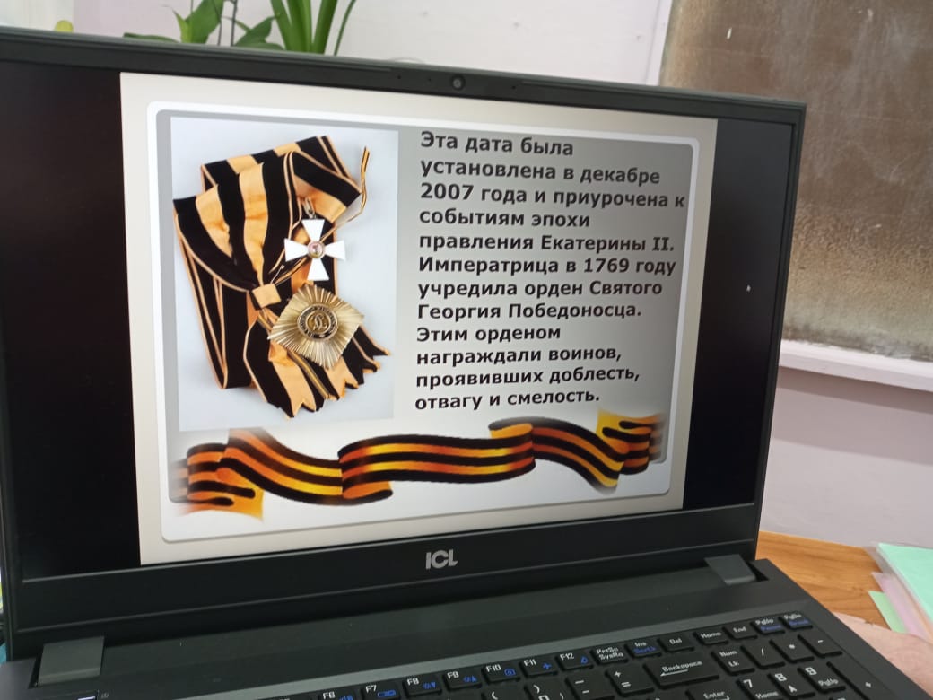 Ребята вспомнили награды разных времен, событий, обсуждали их. В конце урока смотрели фильмы о Героях России.