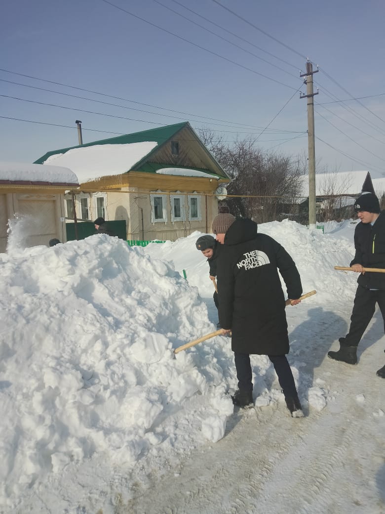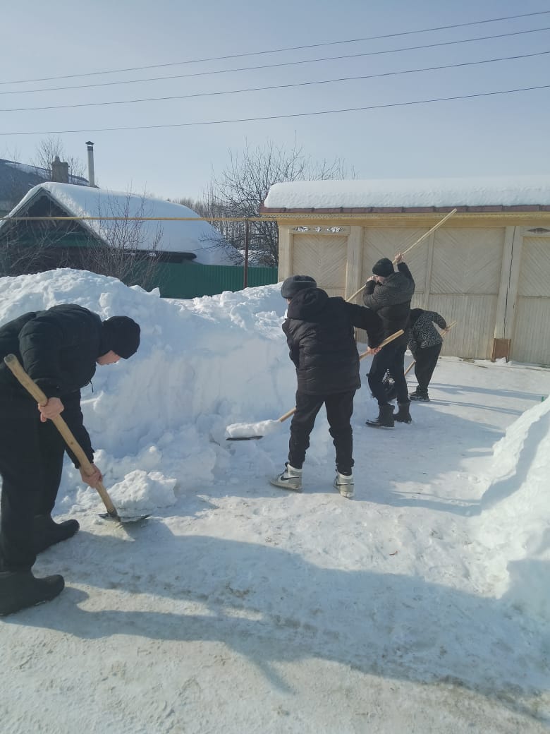 Юнармейцы Кучуковской школы с учителем физкультуры Назмиевым Р.Р. очистили от снега придомовую территорию участника СВО Зиннатуллина Разима Гиниятовича.