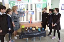 Ребята из младших классов с удовольствием рассматривали и изучали небесные тела, планеты, которые можно было потрогать своими руками.