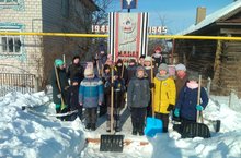 Члены Всероссийского общественного движения «Волонтёры Победы», "Тимуровское движение" под руководством Матвеевой Людмилы Николаевны очистили от снега территорию около памятника погибшим воинам в годы Великой Отечественной войны. Несмотря на мороз и порывистый ветер, школьники упорно сражались с белоснежными сугробами. Через несколько минут территория около памятника героям-землякам была расчищена.