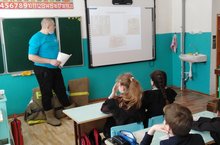 Он ознакомил нас с интересной и в то же время опасной профессией пожарного. Вадим Сергеевич рассказал учащимся, для чего предназначен щит противопожарной безопасности. Он ознакомил учащихся с правилами пользования огнетушителем. Гость объяснил, для чего пожарным нужен молоток, почему ведро в щите противопожарной безопасности имеет форму конуса. Также Вадим Сергеевич напомнил правила пожарной безопасности.