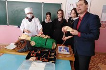 "Беренче медицина ярдәме" темасына ачык дәрес 7-8 кл 26 укучылар практикада ИВЛ һәм турыдан-туры йөрәк массажын ясарга өйрәнделәр