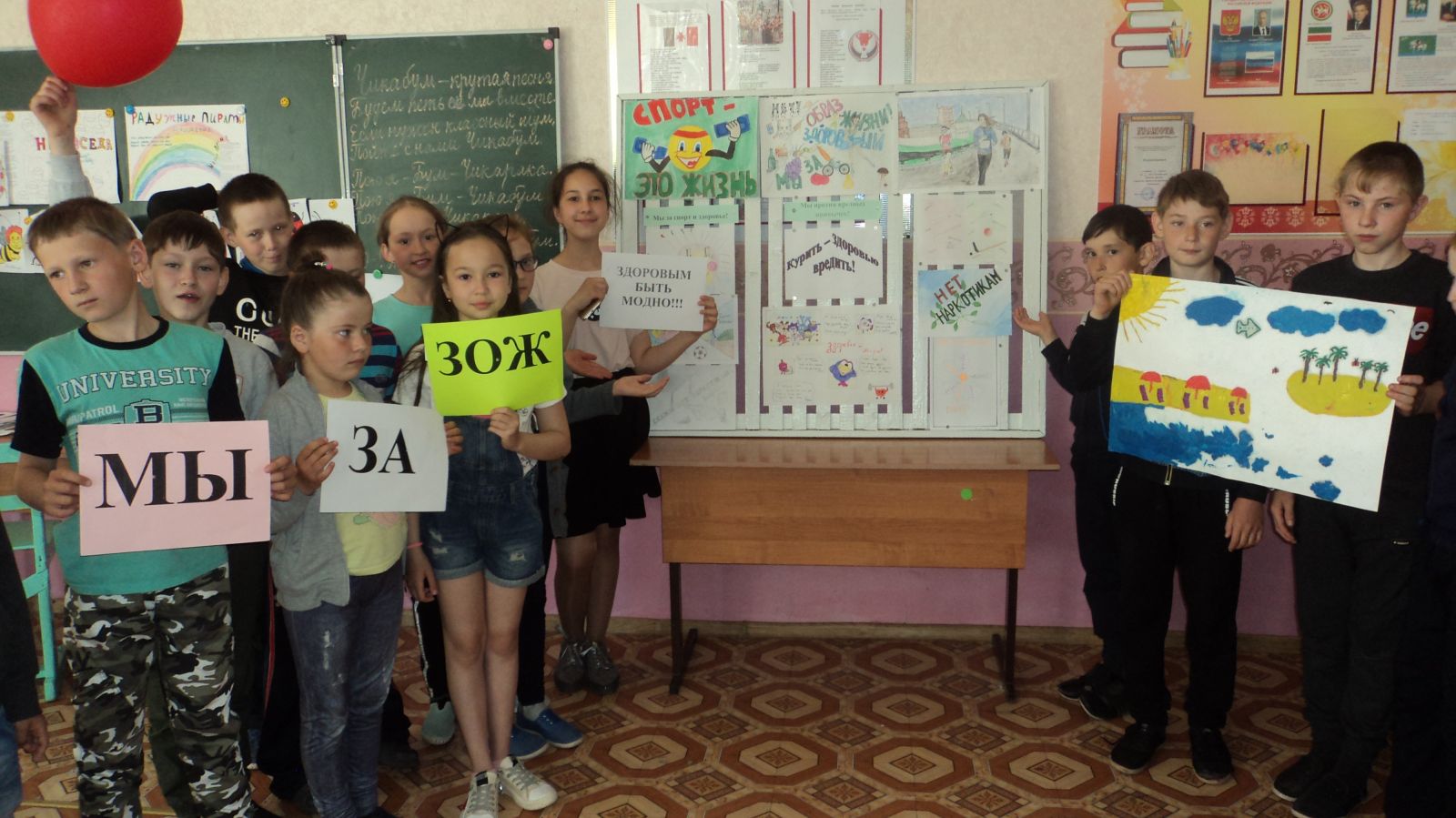Воспитанники пришкольного оздоровительного лагеря "Радуга" оформили стенд "Мы за здоровый образ жизни"