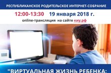 19 января 2018 года с 12.00 до 13.30 состоится Республиканское родительское интернет собрание «Виртуальная жизнь ребенка: интернет друг или враг?». Онлайн трансляция будет вестись на сайте Казанского инновационного университета имени В. Г. Тимирясова по адресу https://ieml.ru/