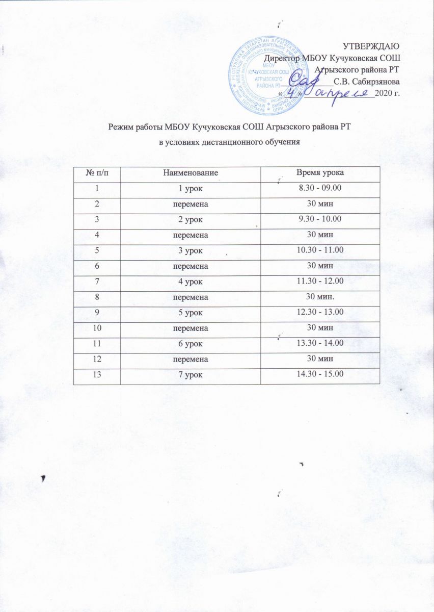 Расписание звонков МБОУ Кучуковская СОШ в условиях дистанционного обучения