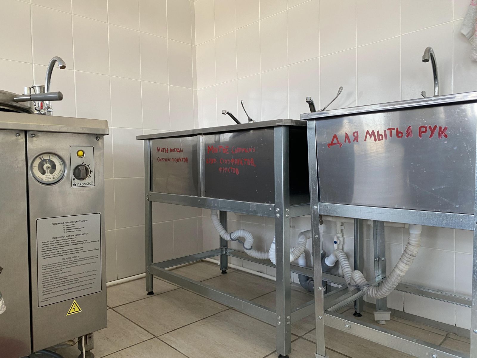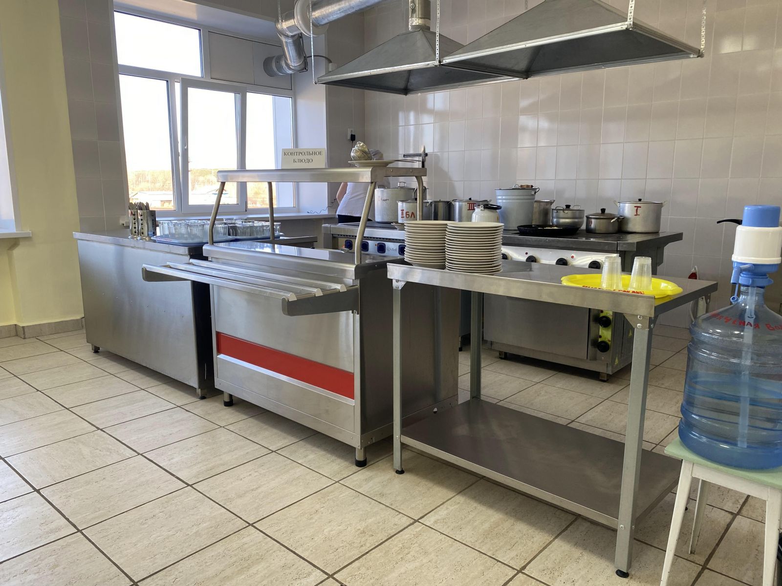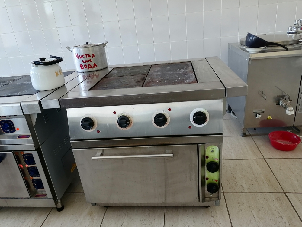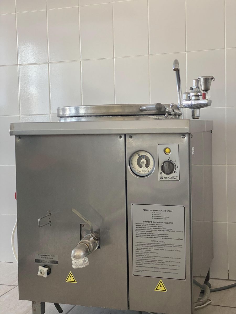Приготовление поварами в школьной столовой горячего завтрака