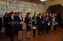 Сегодня на торжественной общешкольной линейке учащиеся нашего 8 класса поздравили педагогов с профессиональным праздником: подарили букеты осенних цветов, и что немаловажно, открытки собственного изготовления со стихами собственного сочинения. Спасибо Вам, ребята. Молодцы !
