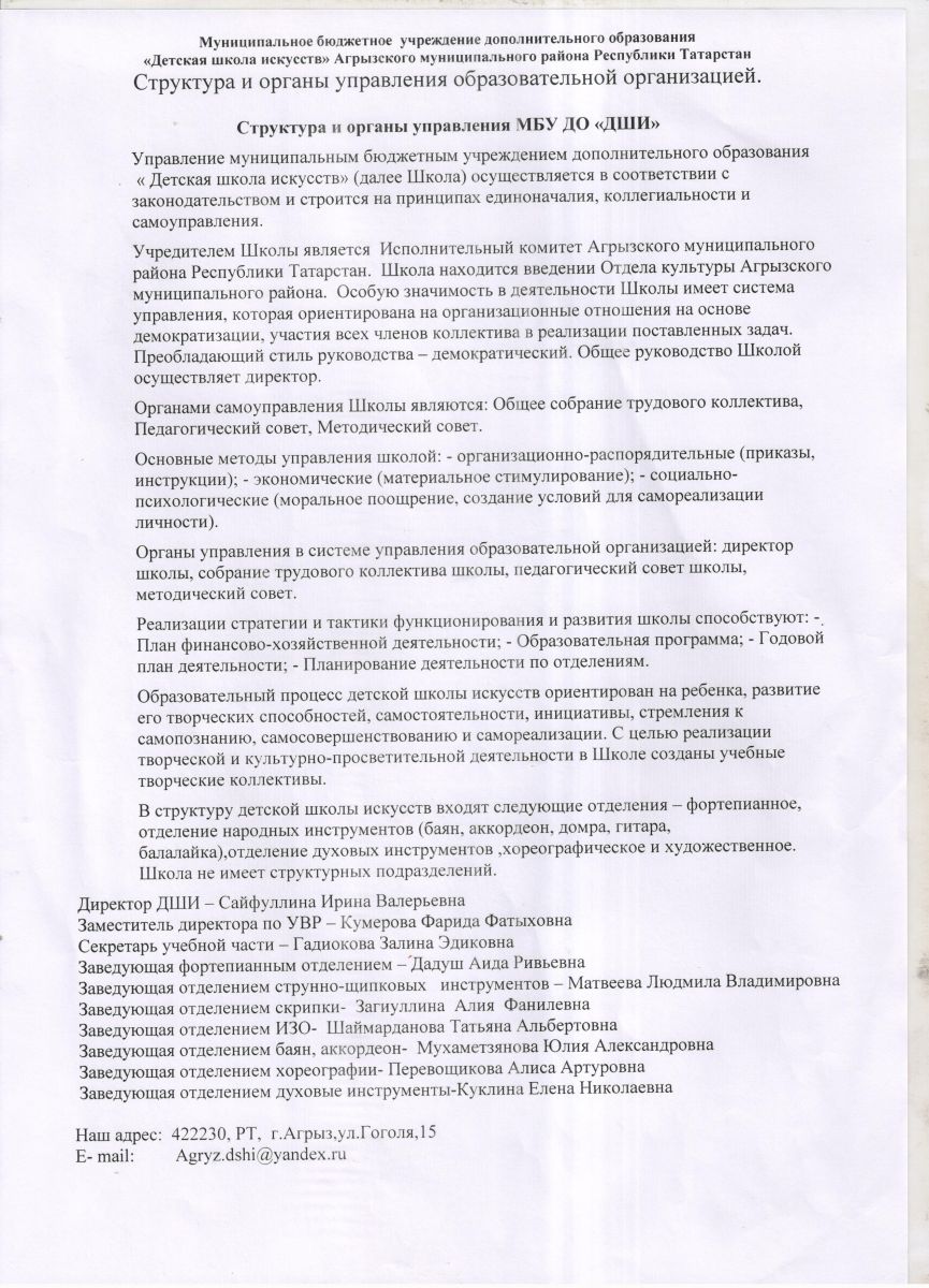 Структура и органы управления образовательной организации /мәгариф оешмасы структурасы һәм идарә итү органнары