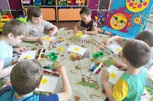 14 апреля с воспитанниками дошкольного возраста воспитатель Халтурина Елена провела занятие по художественно-эстетическому развитию (рисованию) на тему:"Мое любимое солнышко "В рамках программы по ФГОС ребята продолжили рисовать круг, упражнялись в рисовании кистью, расширили представления о явлениях природы (солнце, голубое небо, трава).