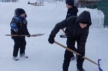 Юнармейцы отряда "Буревестник" помогли семье СВО в уборке снега на территории дома 15.02.2024