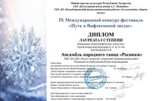 Образцовый ансамбль народного танца «Росинки» под руководством педагога дополнительного образования Рыболовлевой Юлии Александровны завоевал звание Лауреат 1 степени в IX Международном конкурсе-фестивале «Путь к Вифлеемской звезде» 01.02.2024