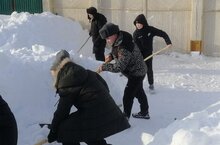 Юнармейцы отряда «Буревестник» помогли семье СВО в уборке снега на территории дома 28.01.2024