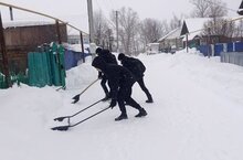 Сегодня юнармейцы Дома Юнармии при МБУ ДО ДДТ "Радуга талантов" на базе МБОУ Салаушской СОШ помогли убрать снег вокруг дома и во дворе семьи участника СВО. 25.01.2024