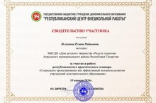 19 января 2024 г. методист ДДТ "Радуга талантов" Исламова Рузана Радиковна участвовала в семинаре: "Социальное проектирование как эффективный механизм развития учреждений дополнительного образования" в г. Арск