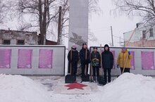 Юнармейцы отряда "Патриоты" МБОУ Кадыбашская СОШ организовали уборку снега у памятника воинам - землякам, погибшим в годы Великой Отечественной войны. 25.12.2023