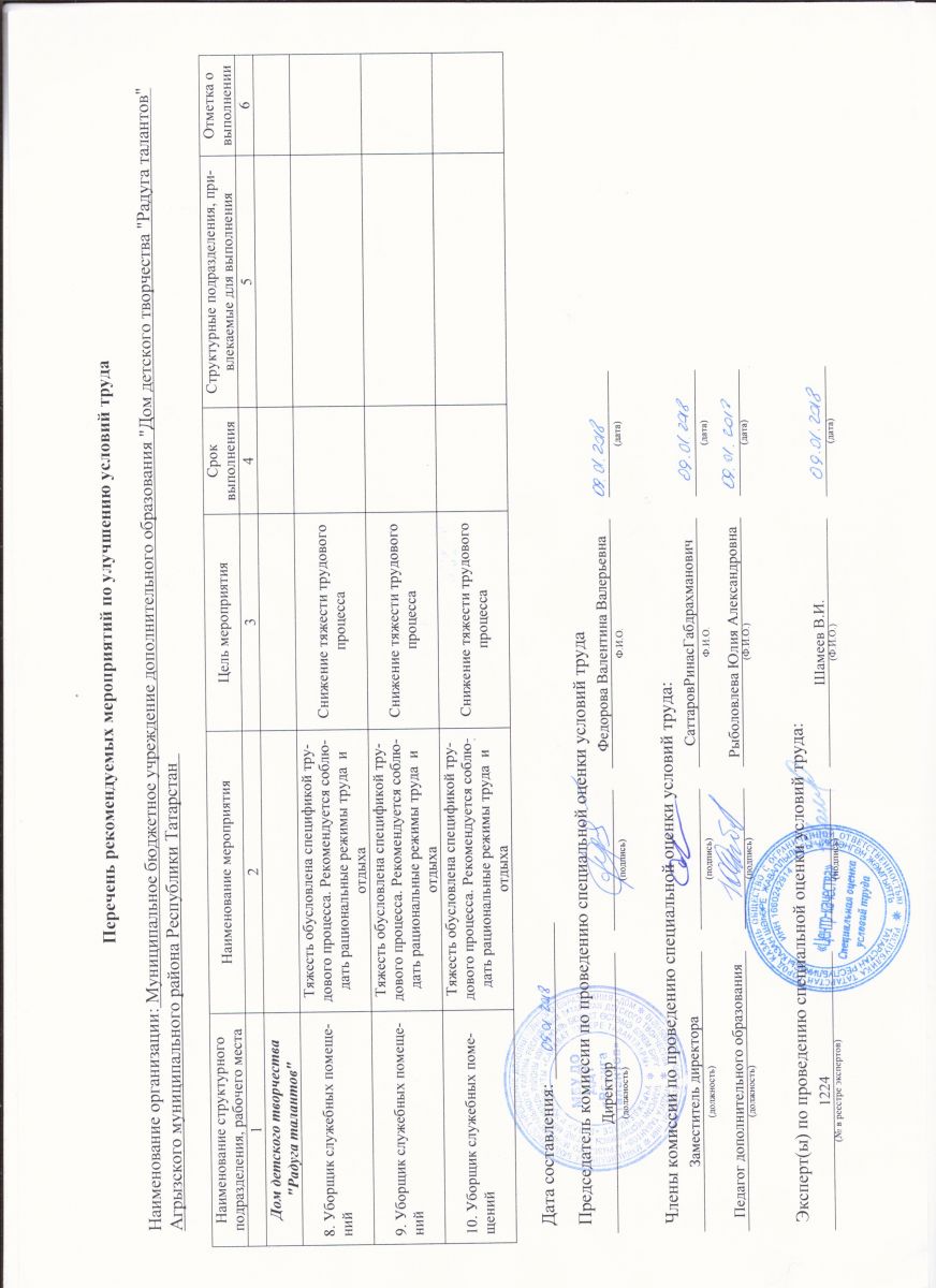 Отчёт о проведении специальной оценки условий труда