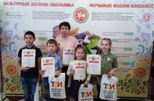 Победители районного конкурса «Культурный дневник школьника» Дилия Закирова, Эмиль Лузан (школа №4), Нурислам Абдуллин (Терсинская школа), Сюмбюль Шайхутдинова (гимназии №1), победительница в номинации «Самый культурный родитель» Ландыш Абдуллина из села Терси вчера приняли участие в торжественной церемонии награждения в Казани.