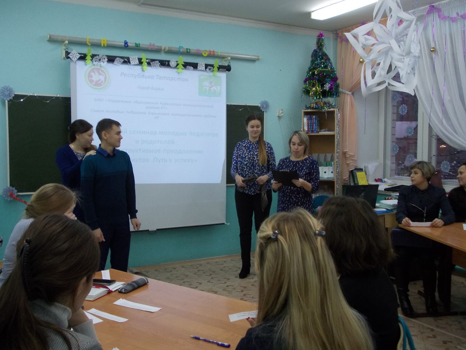21 декабря 2017 года в школе №3 имени Т.Гиззата г. Агрыз был проведен семинар для молодых педагогов и родителей «Конструктивное преодоление конфликтов «Путь к успеху». Организаторы семинара: Ассоциация молодых педагогов Агрызского муниципального района РТ (руководитель Коробейникова К.А.), Центр психологической поддержки «Берег» (руководитель Шушакова Е.Н.), объединение «SамоSтоятельные родители»(руководитель Пономаренко Е. Были озвучены основные проблемы молодых педагогов в работе с трудными детьми. Пути их решения выявили сами участники в групповом обсуждении конфликтных ситуаций, просмотре видеоматериалов, дидактических играх. Благодарим всех участников семинара за продуктивную работу!